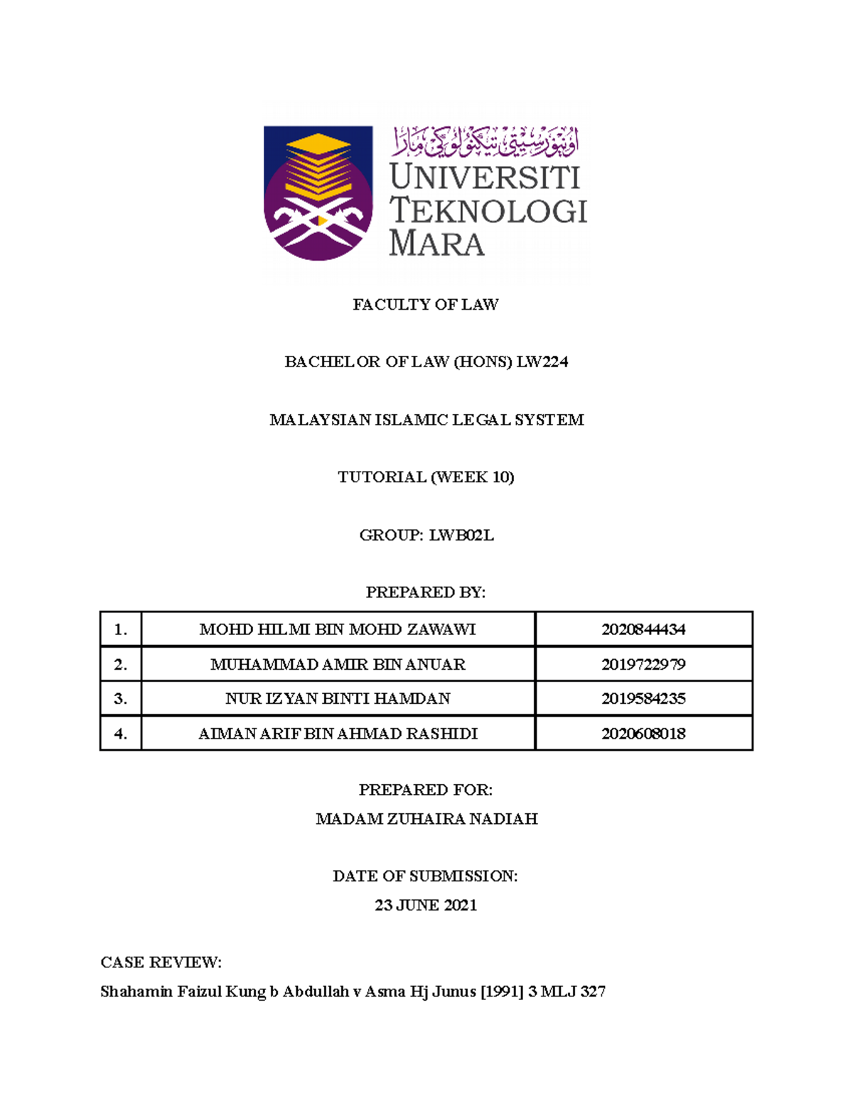Mils Tutorial Week 10 Shahamin Faizul Kung B Abdullah V Asma Hj Junus Faculty Of Law Bachelor Of Studocu